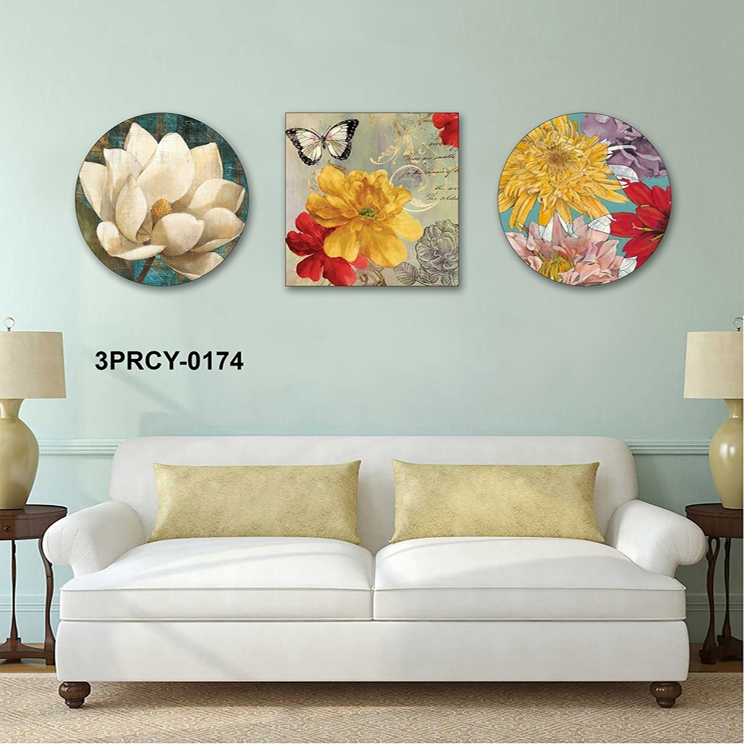3 Parça Mdf Tablo Dekoratif Çiçekler - T-3Prcy-0174 30X30