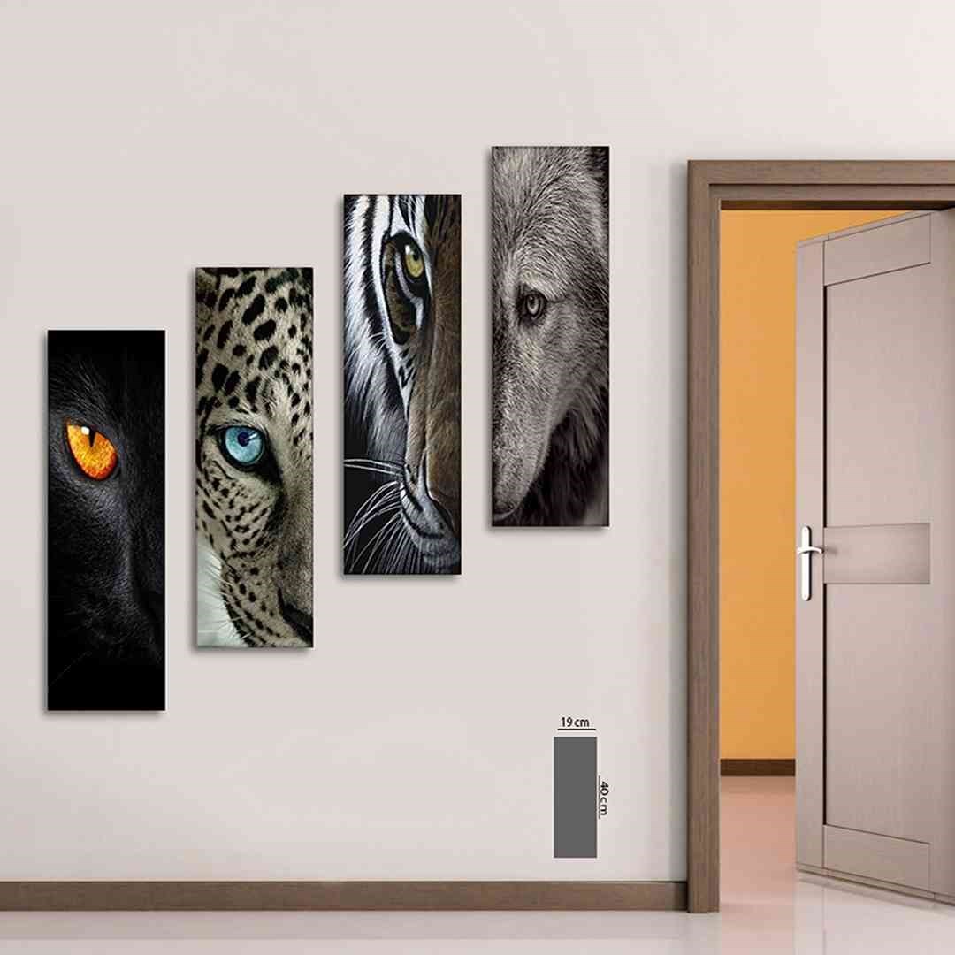 4 Parçalı Vahşi Hayvan Gözleri Mdf Tablo - T-4Dikey-23 19X40