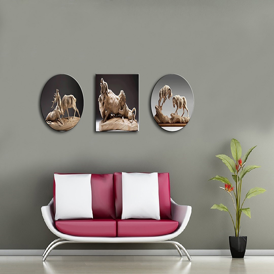 3 Parça Hayvan Heykelleri Mdf Tablo - T-3Mdf-310 30X30
