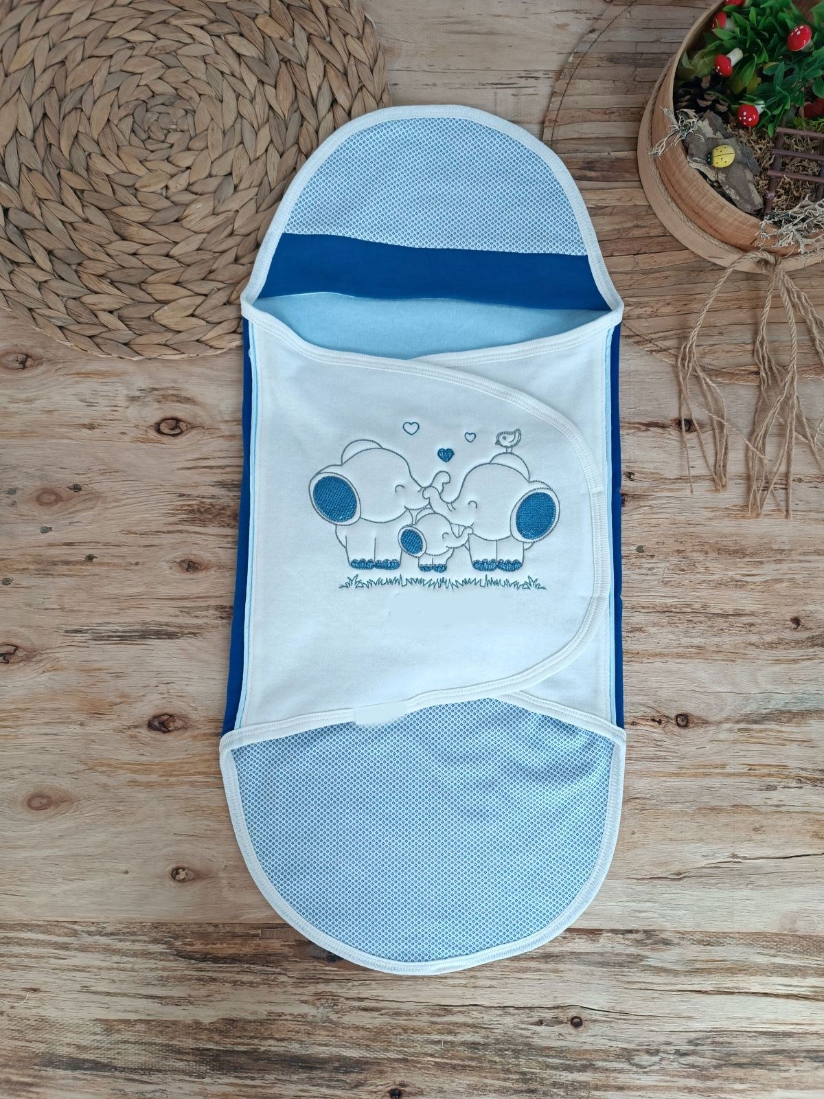 Yenidoğan Mutlu Fil Ailesi Nakışlı Çıt Çıt Kapamalı Bebek Kundak