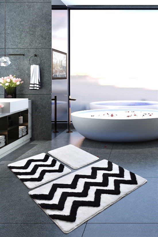 Zıgzag 3 Lu Set Klozet Takımı, Banyo Paspas Seti Halısı-23613