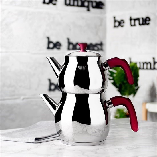 Optima Sarıyer Çelik Çaydanlık Takımı Bordo - 31794